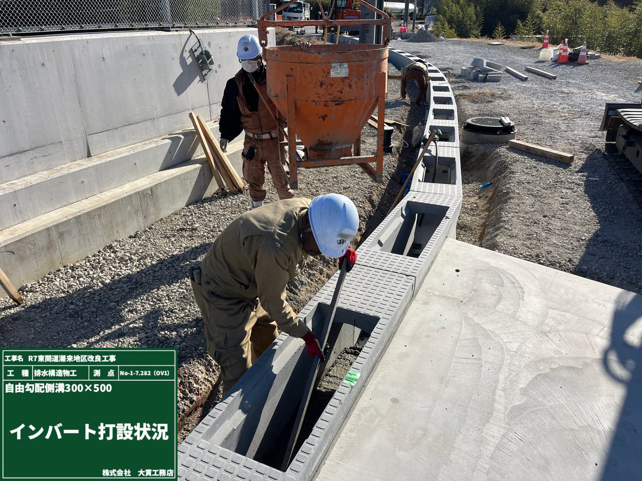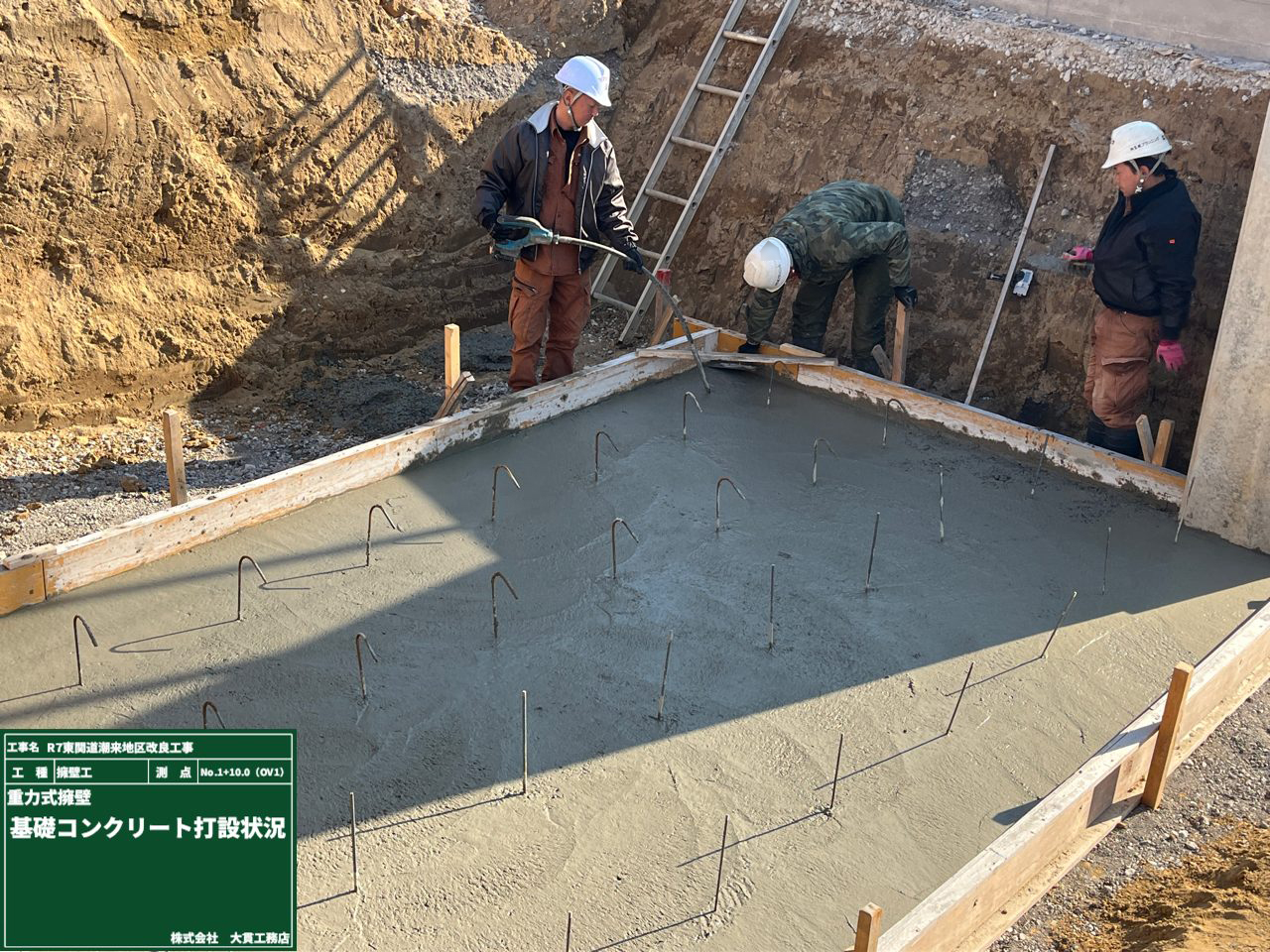 品質が基準を満たしていることを確認したうえで、コンクリートの打設作業へ進みます。